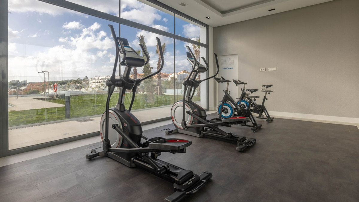 Discover the charm of this 2-bedroom luxury apartment nestled in the coveted enclave of Artola, just a delightful 20-minute stroll from the beach. The main allure of this residence lies in its prime location in a luxury complex boasting a gym and indoor pool. As you step inside, a discreet laundry room to your right, provides ample shelf-space for linen and the washing machine and tumble dryer. The 2 bedrooms are all conveniently located ahead of you (one of which is ensuite), and the kitchen/dining area is immediately to your left, leading out to the spacious terrace. The apartment is equipped with an energy-efficient heat pump system that bestows hot or cold air according to your needs. Both bathrooms also have underfloor-heating. Easy access to the rooftop terrace, where you can enjoy the sun throughout the year. Parking is a breeze with not one but two dedicated spaces – an indoor space for your vehicle and an outdoor convenience for guests. This flat is nestled within a secure gated complex, granting you exclusive access to a cutting-edge gym for your fitness pursuits. Step into the outdoors to find a spacious pool area, perfect for unwinding in the Mediterranean sun. For those cooler days, retreat to the heated indoor pool.