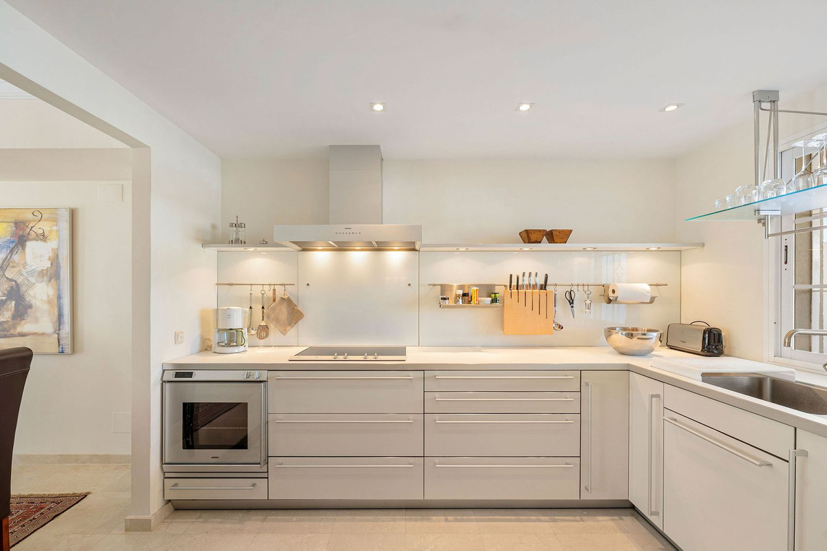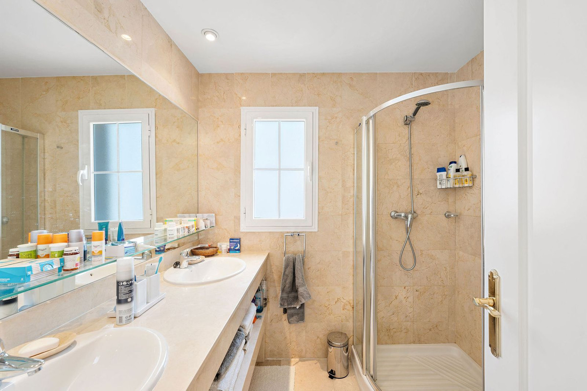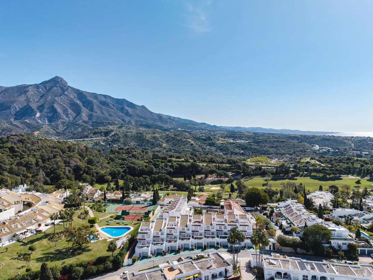 Introducing this spacious townhouse for sale in the heart of the Golf Valley in Nueva Andalucia, one of the most demanded areas. This location is particularly popular for those who spend their days on the golf course, as the Aloha Golf Club among others is just a short distance away. A perfect holiday home or permanent residence depending on what you are looking for. The property is distributed over 3 floors, the large garage, a 4th room and laundry area are situtated on the lower floor, kitchen, living room, 2 terraces are on the main floor with 3 bedrooms 2 bathrooms on the 2nd floor, a large solarium with amazing views and sun all day to to facing both east and west. The house is very well kept and ready to move into.