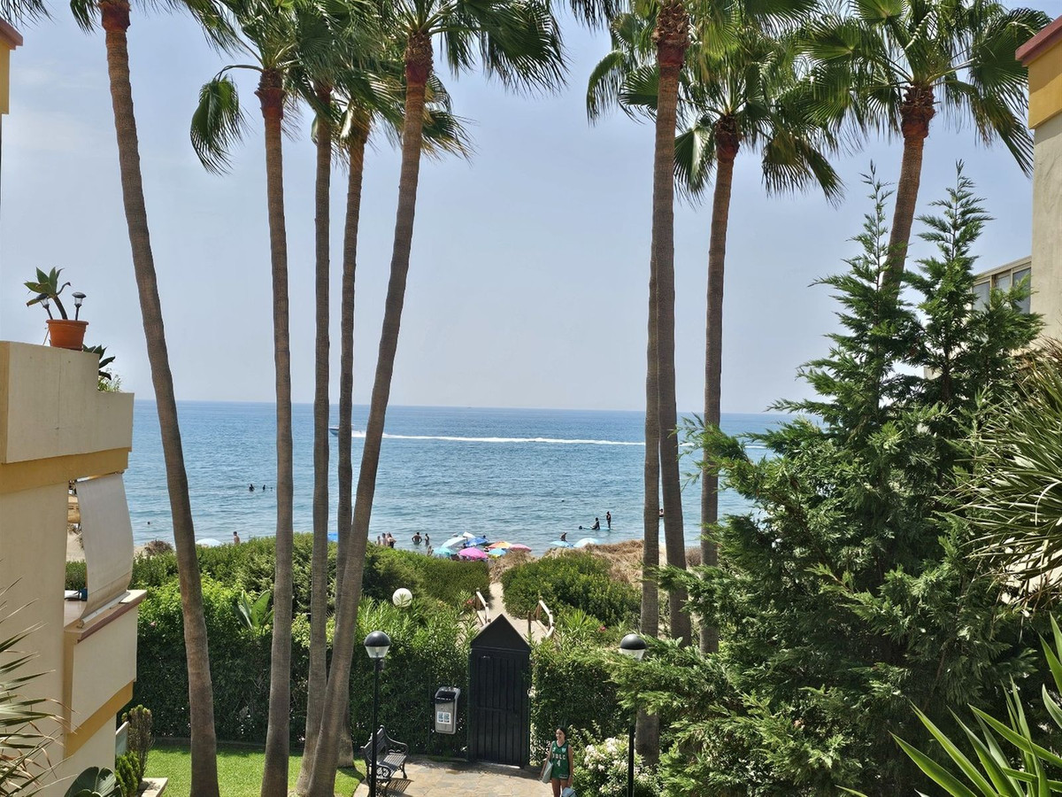 This bright and fully furnished studio apartment is set within a beachfront development in the sought-after Elviria area of Marbella. It’s on the ground floor and offers direct access to the beach — ideal for holiday living or as a solid rental investment.