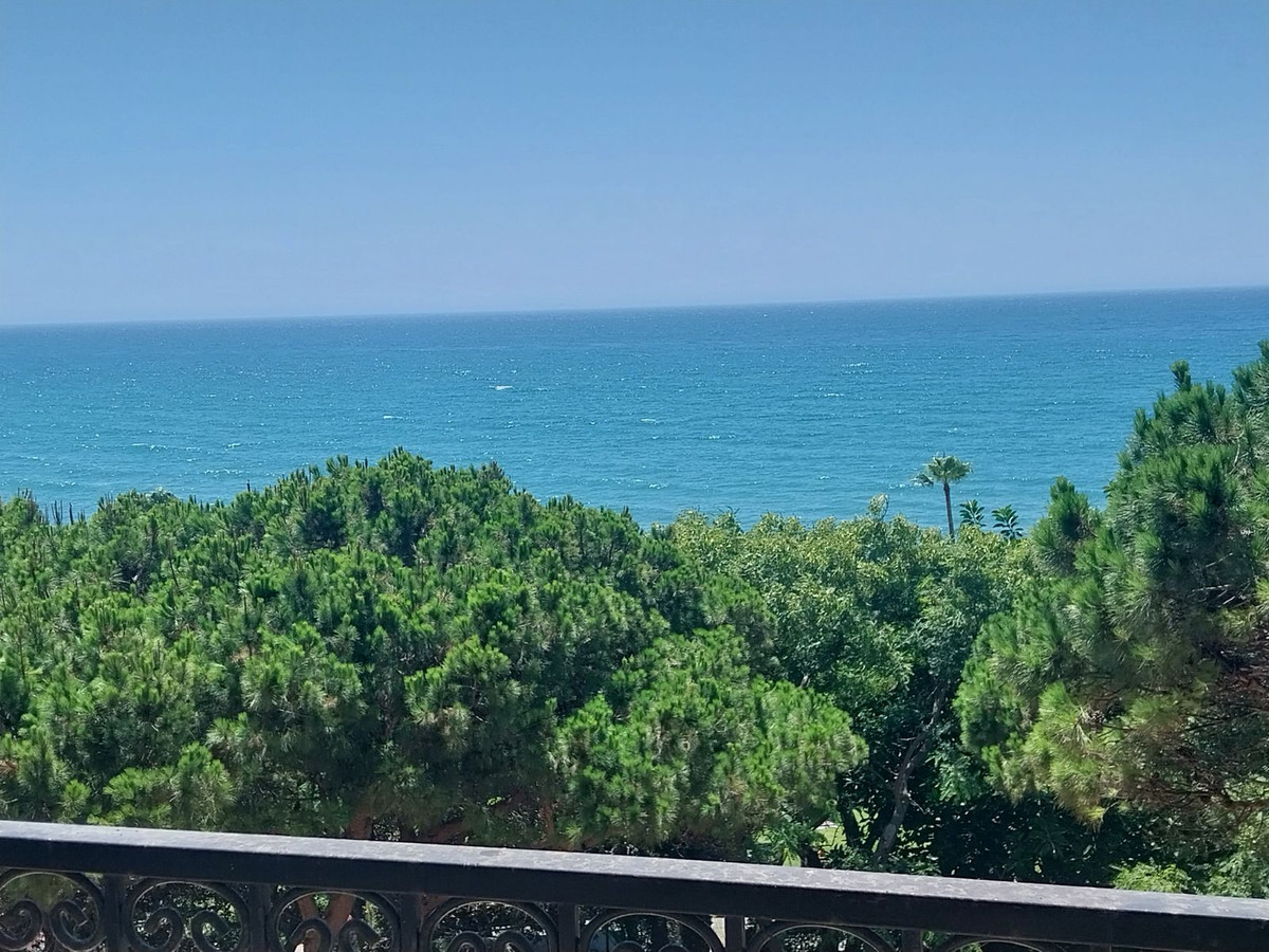 SEA VIEWS!! LOCATION!! The spacious apartment to reform with 2-bedroom, 2-bathroom (one en suite) is located in an exclusive frontline beach complex in Calahonda. Situated on the third floor with lift access, it boasts a privileged front-facing position, offering spectacular sea views from both bedrooms, the spacious living-dining room, and, of course, from the large private terrace — a true balcony over the Mediterranean.