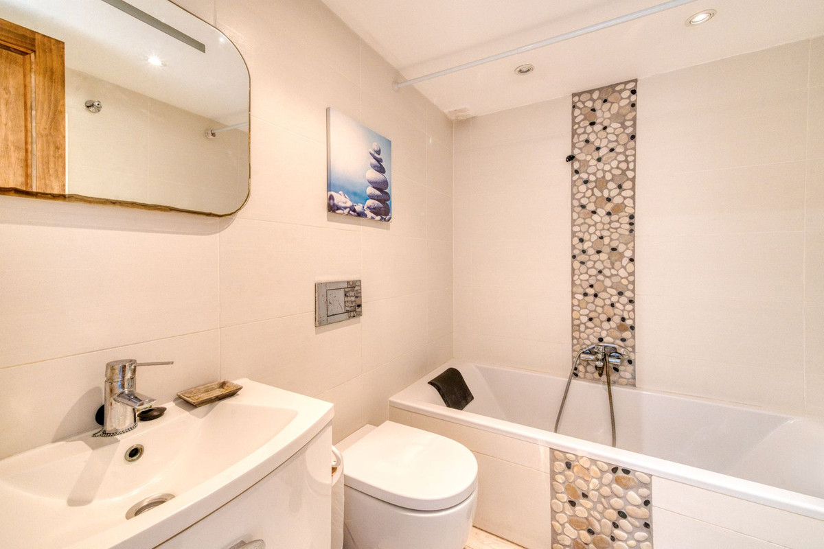 Impeccablement présentée et bénéficiant d'une orientation sud-ouest privilégiée, cette élégante maison de ville de deux chambres offre une vue imprenable sur le golf de La Duquesa et la mer Méditerranée. Située dans un quartier paisible et recherché, à proximité de la marina et du golf environnant, la propriété allie confort, espace et commodités, tout en étant à seulement 15 minutes à pied de la plage et du port de plaisance animé de Puerto de la Duquesa, avec ses bars et restaurants. Le rez-de-chaussée comprend une grande cuisine entièrement équipée et une salle de petit-déjeuner avec buanderie attenante et toilettes invités. Un spacieux salon-salle à manger s'ouvre sur une généreuse terrasse couverte, idéale pour dîner en plein air tout en profitant de la vue panoramique. Un escalier descend vers un jardin privé, conçu pour profiter du soleil et se détendre toute l'année. À l'étage, se trouvent deux chambres doubles avec placards intégrés et deux salles de bains modernes, dont une suite parentale avec salle de bains privative offrant une vue imprenable. La suite parentale dispose d'une terrasse intégrée à la chambre, mais pourrait très bien être reconvertie en terrasse. Les avantages supplémentaires comprennent un parking privé hors route, un grand espace de rangement avec un placard en bas et un grenier (qui pourrait également être converti en 3ème chambre) et l'accès à des jardins communs magnifiquement entretenus avec deux piscines, dont une piscine pour enfants.