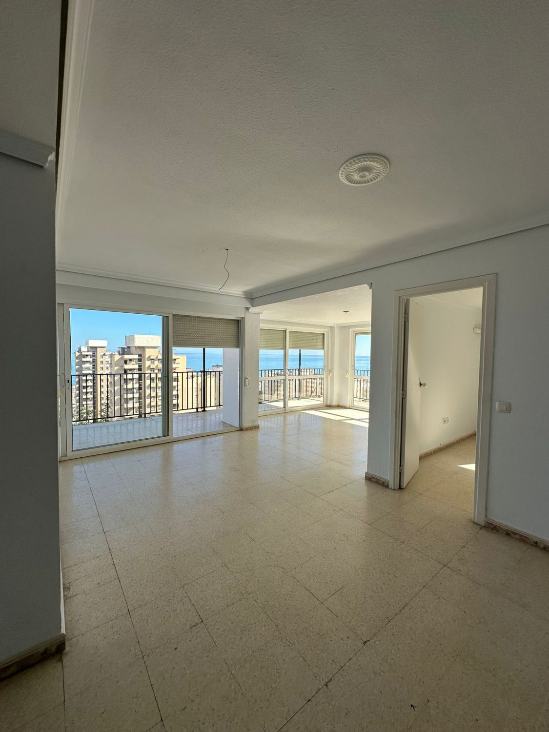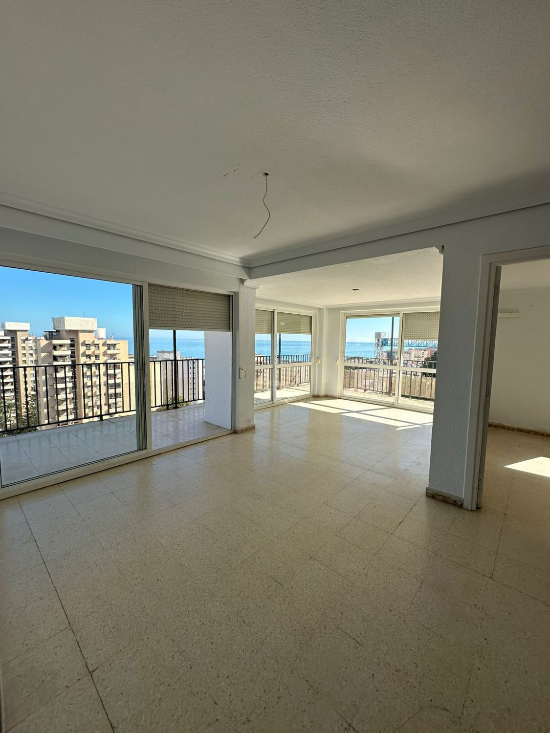 Nous vous proposons ce spacieux appartement à vendre dans la ville côtière de Torremolinos, dans la province de Malaga. Situé au huitième étage d'un immeuble résidentiel avec ascenseur, il offre une surface habitable de 152 m² et comprend trois chambres, une cuisine équipée, un salon-salle à manger, deux salles de bains (dont une attenante à la chambre principale) et une terrasse avec vue panoramique.