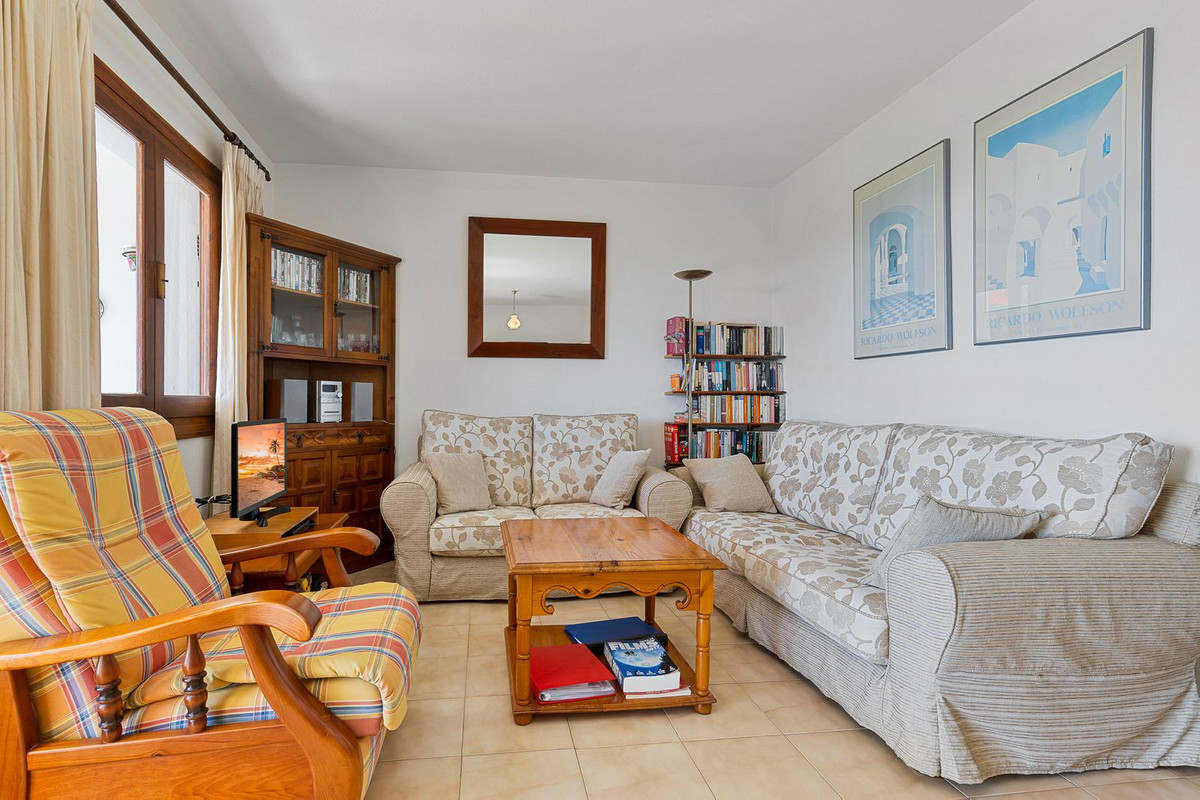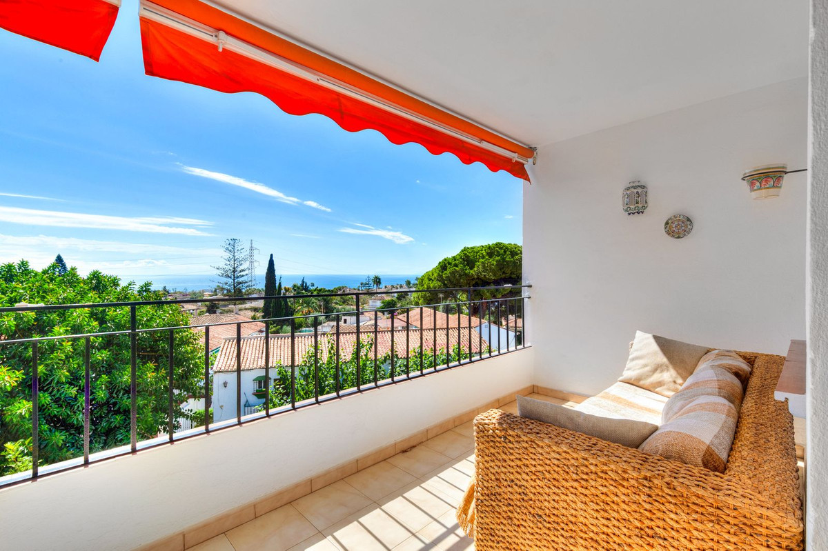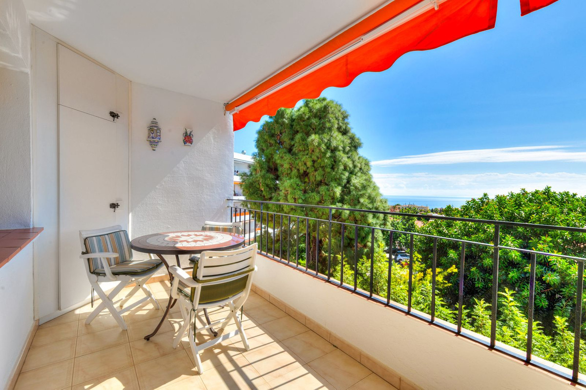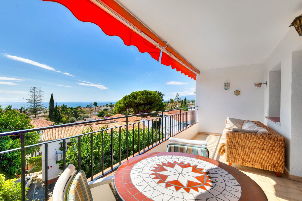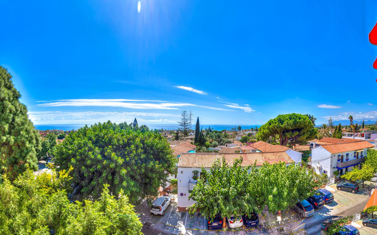 Situé au troisième étage, dans le quartier résidentiel calme d'El Mirador à Marbella, cet appartement ensoleillé comprend deux chambres, une salle de bains, un salon-salle à manger, une cuisine équipée et une spacieuse terrasse avec une vue imprenable sur la mer.