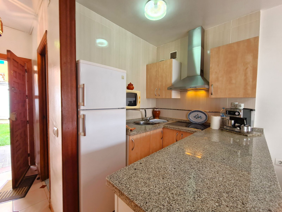 Situé à quelques mètres de la plage et de son sentier côtier, San Luis de Sabinillas, avec ses nombreuses possibilités de loisirs, restaurants, supermarchés et boutiques, est à seulement 2 minutes en voiture. Avec l'aéroport de Malaga à 90 minutes et celui de Gibraltar à 35 minutes, cette propriété est idéale comme résidence principale ou secondaire. L'appartement dispose d'un lumineux séjour-salle à manger avec cuisine ouverte et accès direct à la terrasse et au jardin privés, offrant une vue partielle sur la mer. L'appartement dispose de deux chambres avec placards intégrés et d'une salle de bain complète avec douche. Profitez du confort d'une buanderie avec rangements et d'une place de parking privée dans la propriété, qui comprend également des jardins et une piscine communs. EXCELLENTE OPPORTUNITÉ ! NOUS VOUS RECOMMANDONS VOTRE VISITE !
