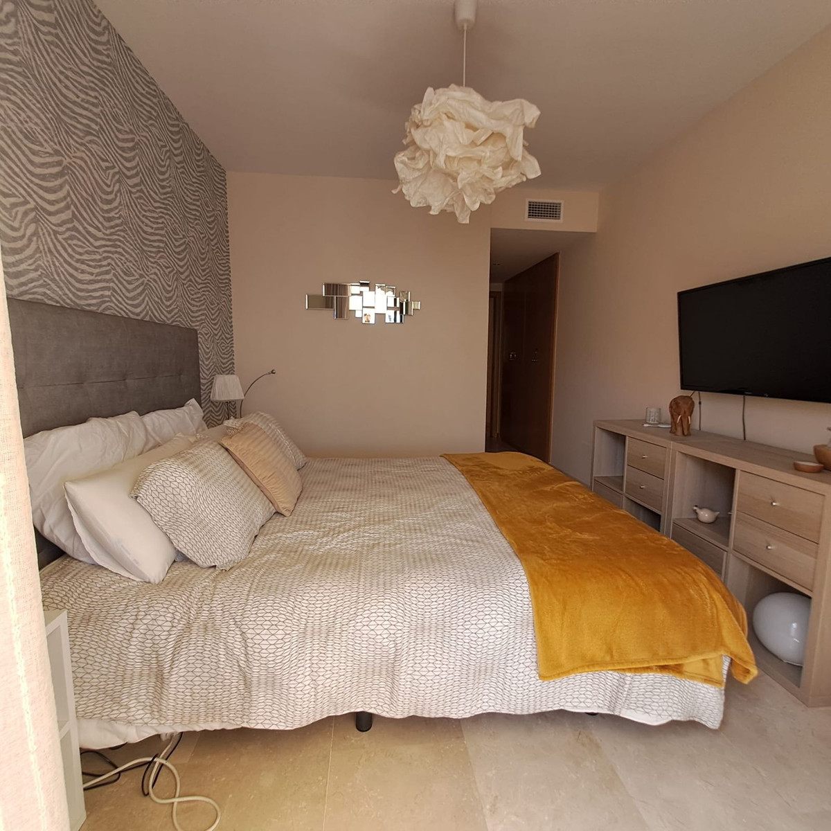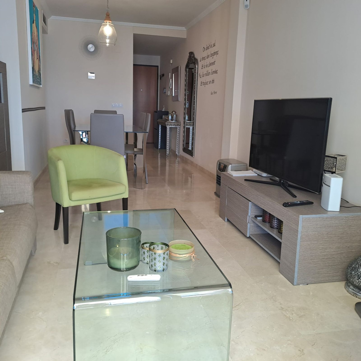 Découvrez un superbe appartement entièrement meublé dans le prestigieux quartier résidentiel de Doña Julia, alliant style et qualité. À seulement 10 minutes à pied de la plage et des commerces, niché au cœur du golf de Doña Julia, cet élégant appartement en rez-de-chaussée surélevé offre de spacieux espaces de vie et deux grandes terrasses (69 m² au total) avec une vue imprenable sur la mer. Doté d'une cuisine moderne avec buanderie attenante, d'un séjour lumineux ouvrant sur les terrasses, de deux chambres spacieuses avec placards intégrés et de deux salles de bains (dont une attenante avec douche), ce bien est idéal pour une vie raffinée. La résidence bien entretenue offre tranquillité, convivialité et une agréable piscine avec transats. Doté d'une grande place de parking souterrain et d'un cellier de 14 m², c'est l'occasion idéale de savourer le charme de l'art de vivre andalou dans un cadre idyllique !
