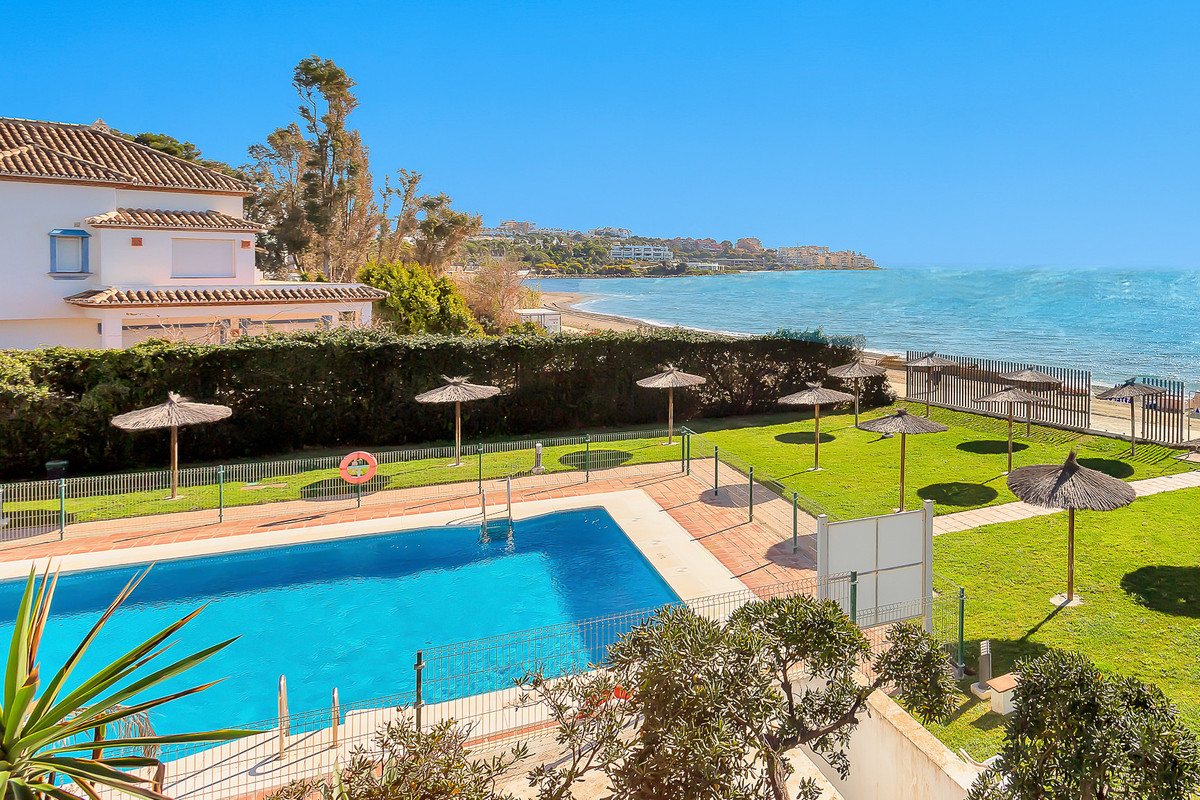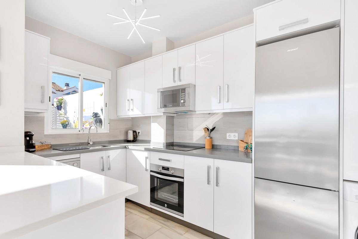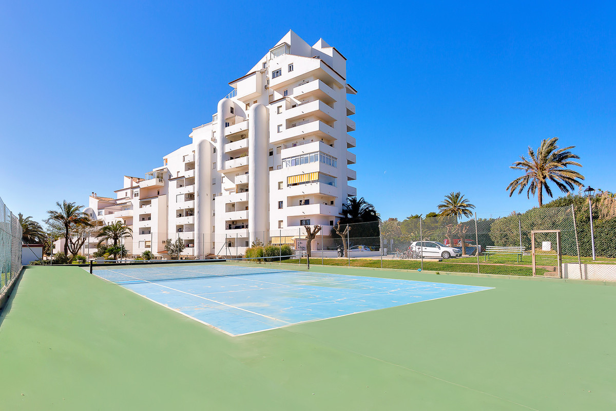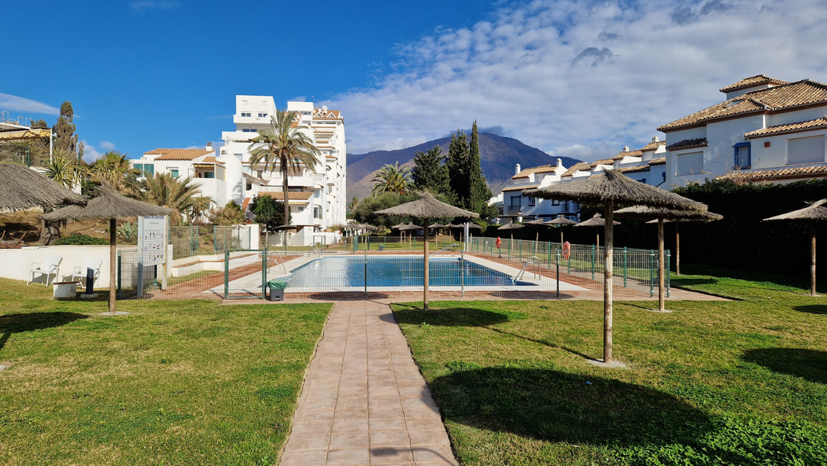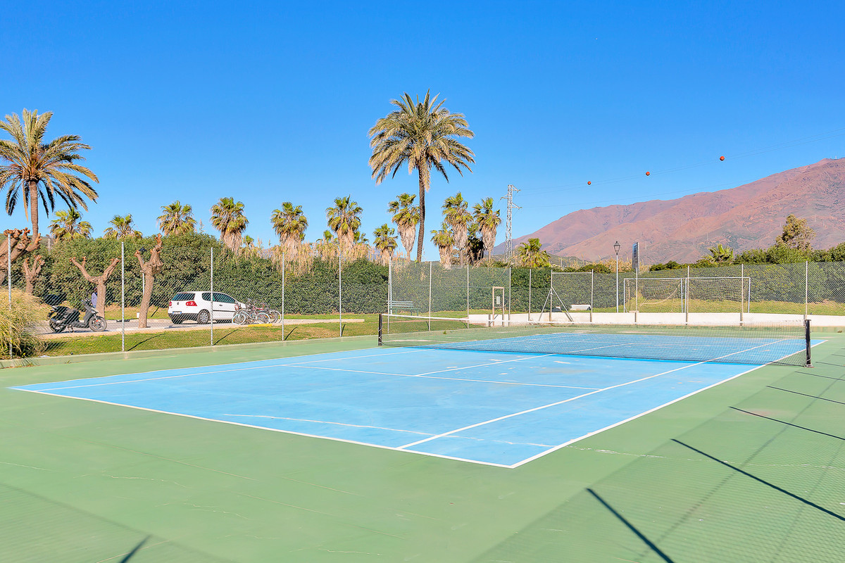 Urbanisation fermée consolidée, à 2 minutes en voiture et 20 minutes à pied du port de plaisance d'Estepona, avec accès direct à la plage, grande piscine d'eau salée, court de tennis, espace barbecue et parking commun.