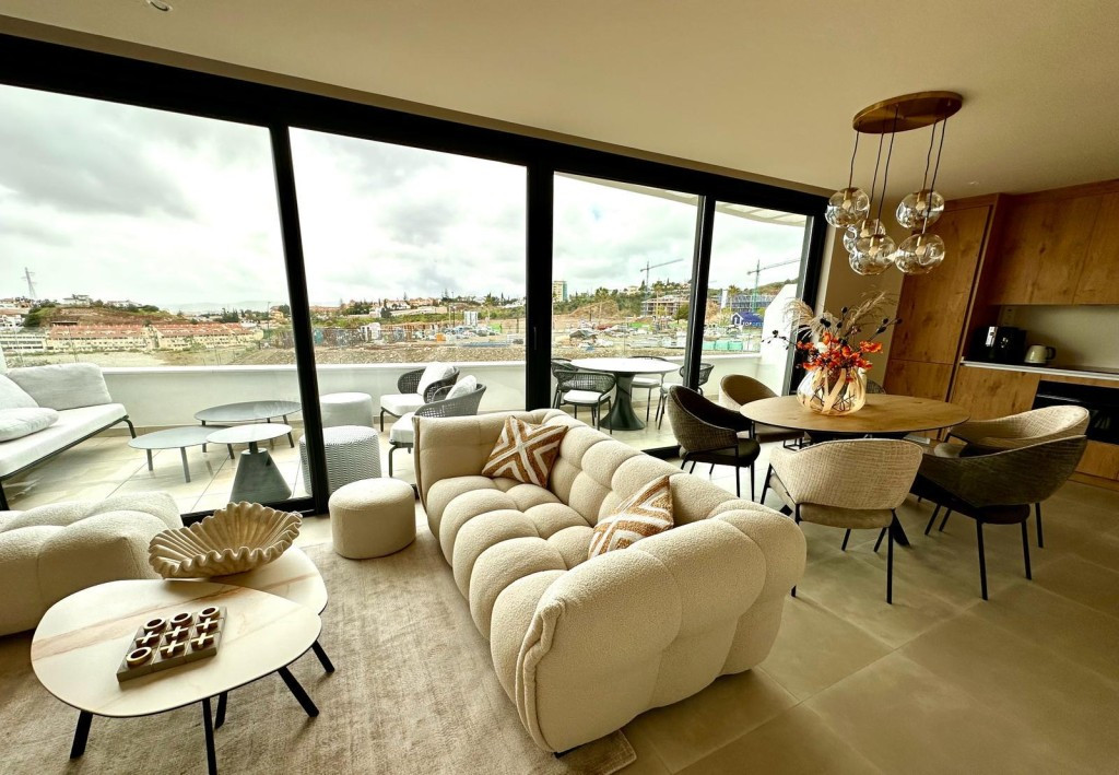 Penthouse neuf de style moderne à El Higueron, Fuengirola. Il comprend deux chambres, une salle de bain, une cuisine ouverte, un salon et une superbe terrasse avec vue panoramique sur la mer. Vendu meublé avec des meubles de qualité, il comprend une place de parking extérieure, une place de parking souterraine et un débarras. Climatisation réversible par aérothermie, stores électriques dans le salon, variateurs d'intensité dans toutes les pièces, connexion TV et internet dans le salon et les chambres, chauffage au sol, carrelage spécial et douche à effet pluie dans la salle de bain. Résidence sécurisée avec piscines et commodités. La plage est à 15 minutes à pied.