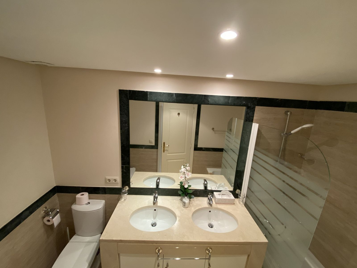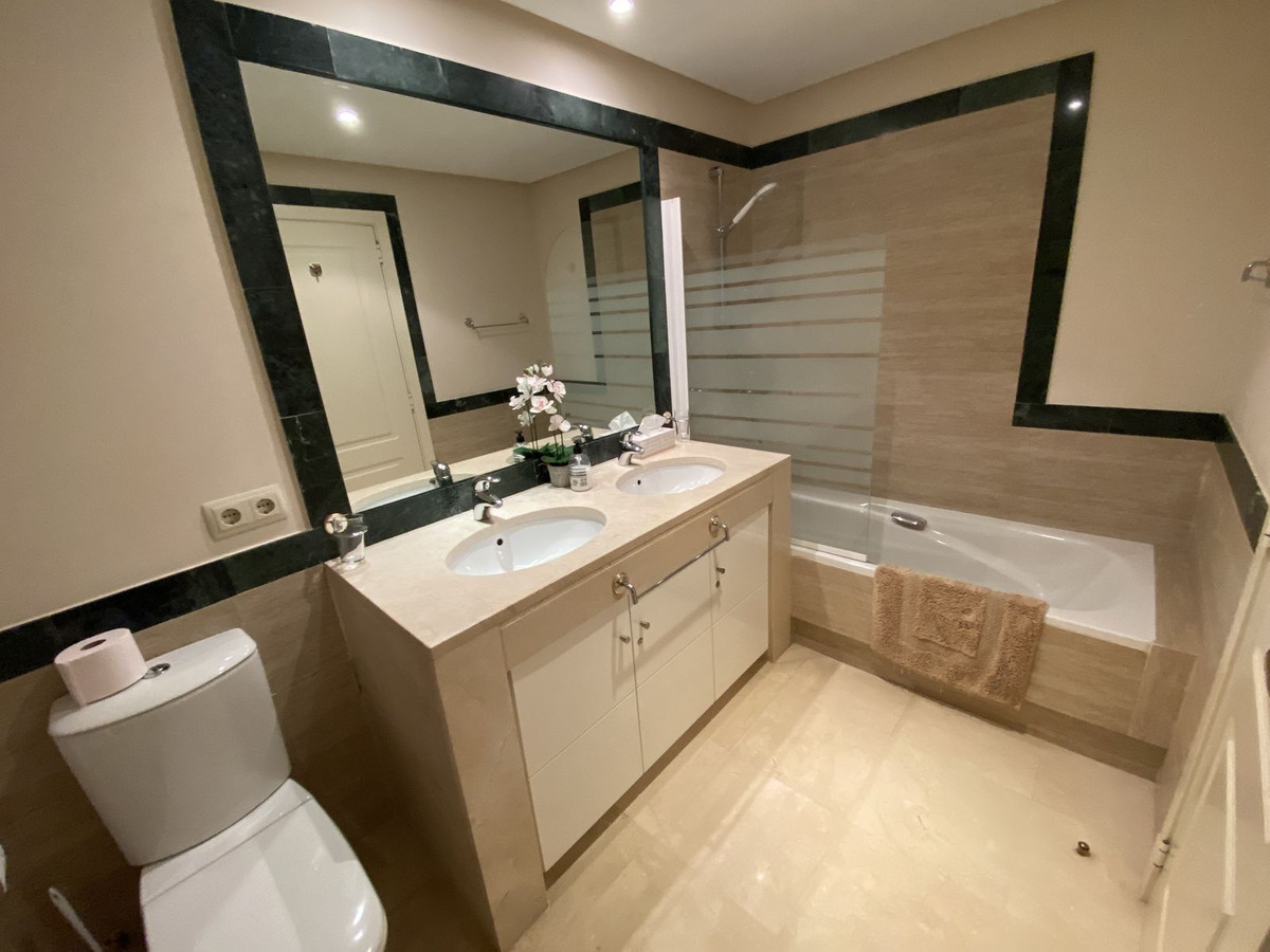 Magnifique et spacieux appartement de deux chambres au premier étage à La Quinta, Benahavis, à seulement 10 minutes en voiture de Puerto Banús. Le salon/salle à manger donne directement sur une terrasse spacieuse et lumineuse avec salon de jardin pour profiter du plein air. La chambre principale dispose d'une salle de bains attenante, et la chambre principale et la chambre d'amis disposent de nombreux rangements. Entièrement rénové avec goût, le bien dispose de rangements supplémentaires dans les deux salles de bains et d'un plan de travail supplémentaire dans la cuisine.