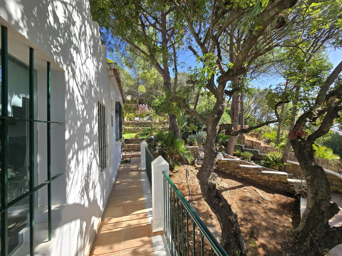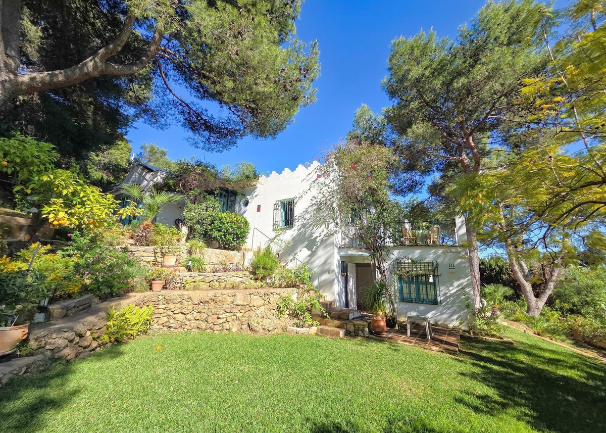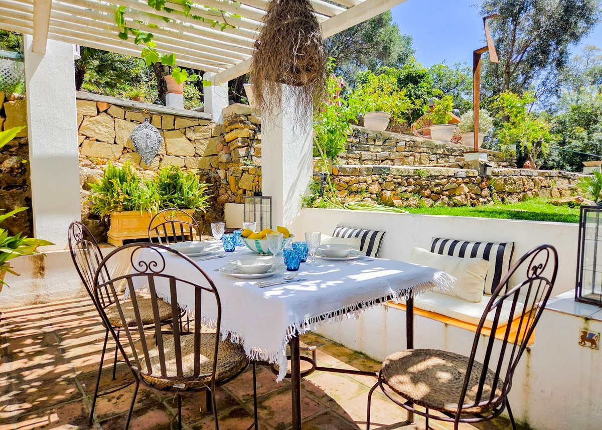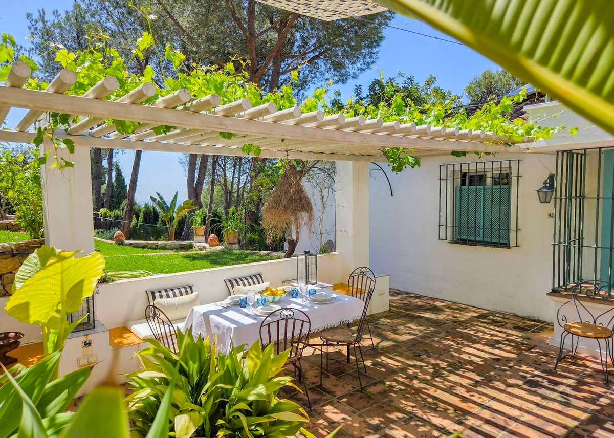 Située au milieu de pins parfumés dans le prestigieux quartier de Montúa, juste au-dessus de Marbella, au pied de la majestueuse montagne La Concha, cette charmante villa de style cortijo de plain-pied allie parfaitement le caractère andalou traditionnel au confort moderne.