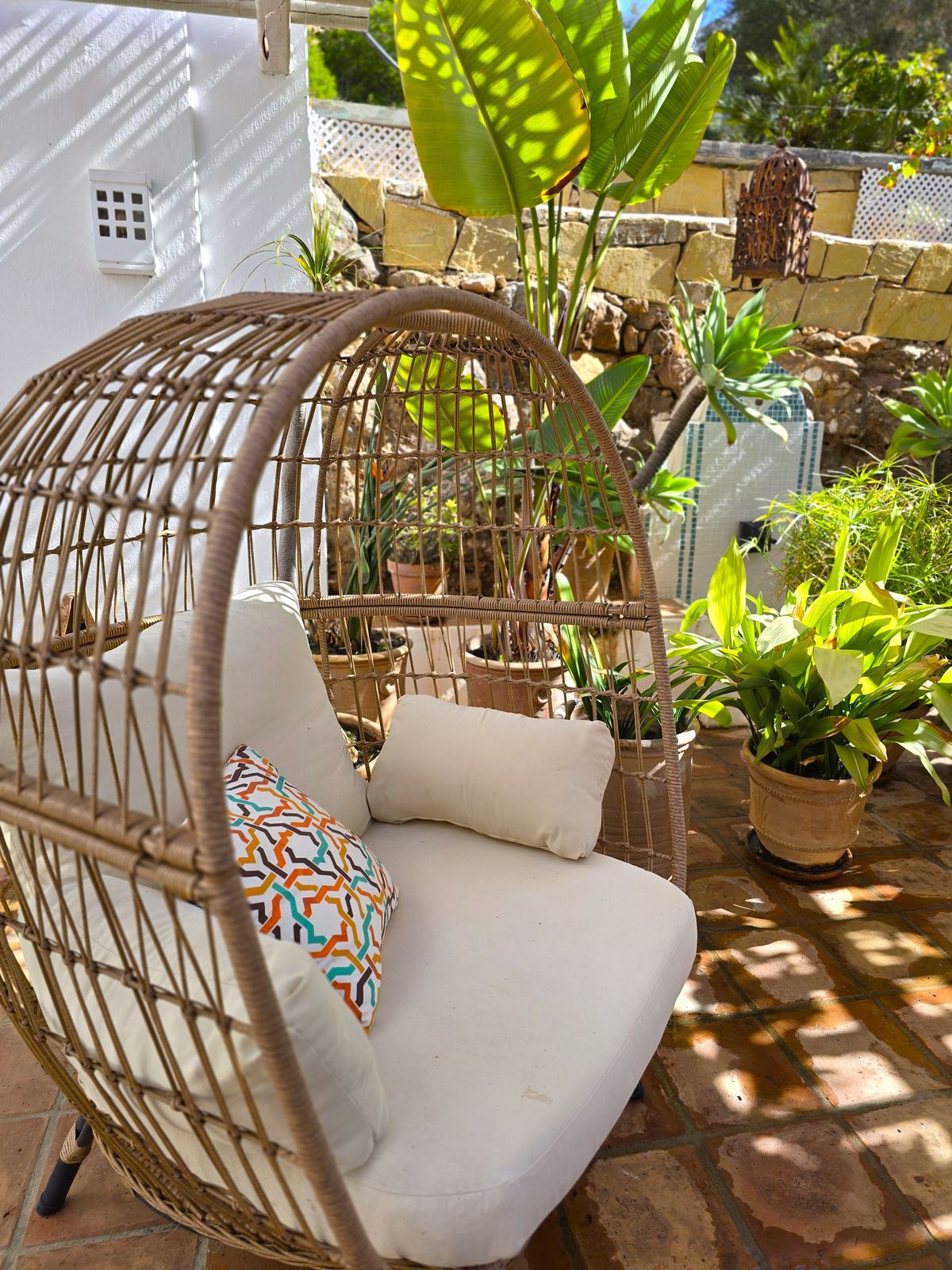 Au cœur de la maison se trouve sa charmante cour centrale, véritable sanctuaire extérieur. Des pergolas ornées de plantes grimpantes créent un espace repas d'été ombragé, idéal pour des soirées mémorables, tandis qu'un coin salon confortable près de la fontaine vous invite à la détente et aux sons apaisants de la nature.