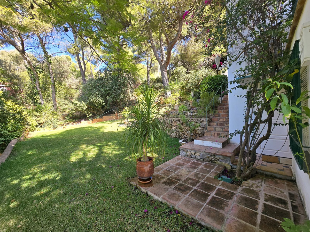 Implantée sur un terrain de 2 289 m², la propriété offre 245 m² de surface construite, 120 m² de terrasses et patios, ainsi qu'un espace de rangement de 37 m². Avec un potentiel d'agrandissement d'environ 150 m², cette propriété pourrait également être transformée en une résidence unique de style hôtel-boutique, nichée au calme dans la pinède, à deux pas du cœur de Marbella. C'est donc une opportunité idéale pour les investisseurs.