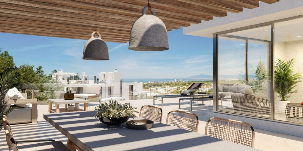 À Cabopino, à l'est de Marbella, il y aura 44 beaux et luxueux appartements neufs de 2 et 3 chambres de 123 m2, avec vue sur la mer dans une belle forêt de pins.