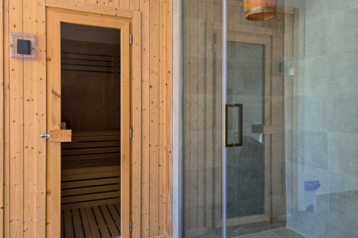 The complex offers extensive communal areas, including a heated outdoor pool, gym, SPA area, sauna, and a charming rooftop restaurant, perfect for relaxation.