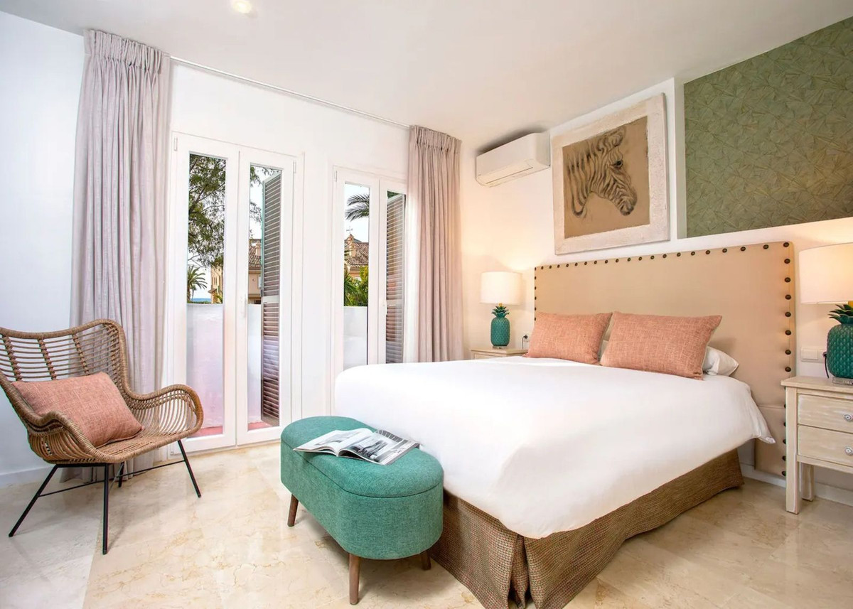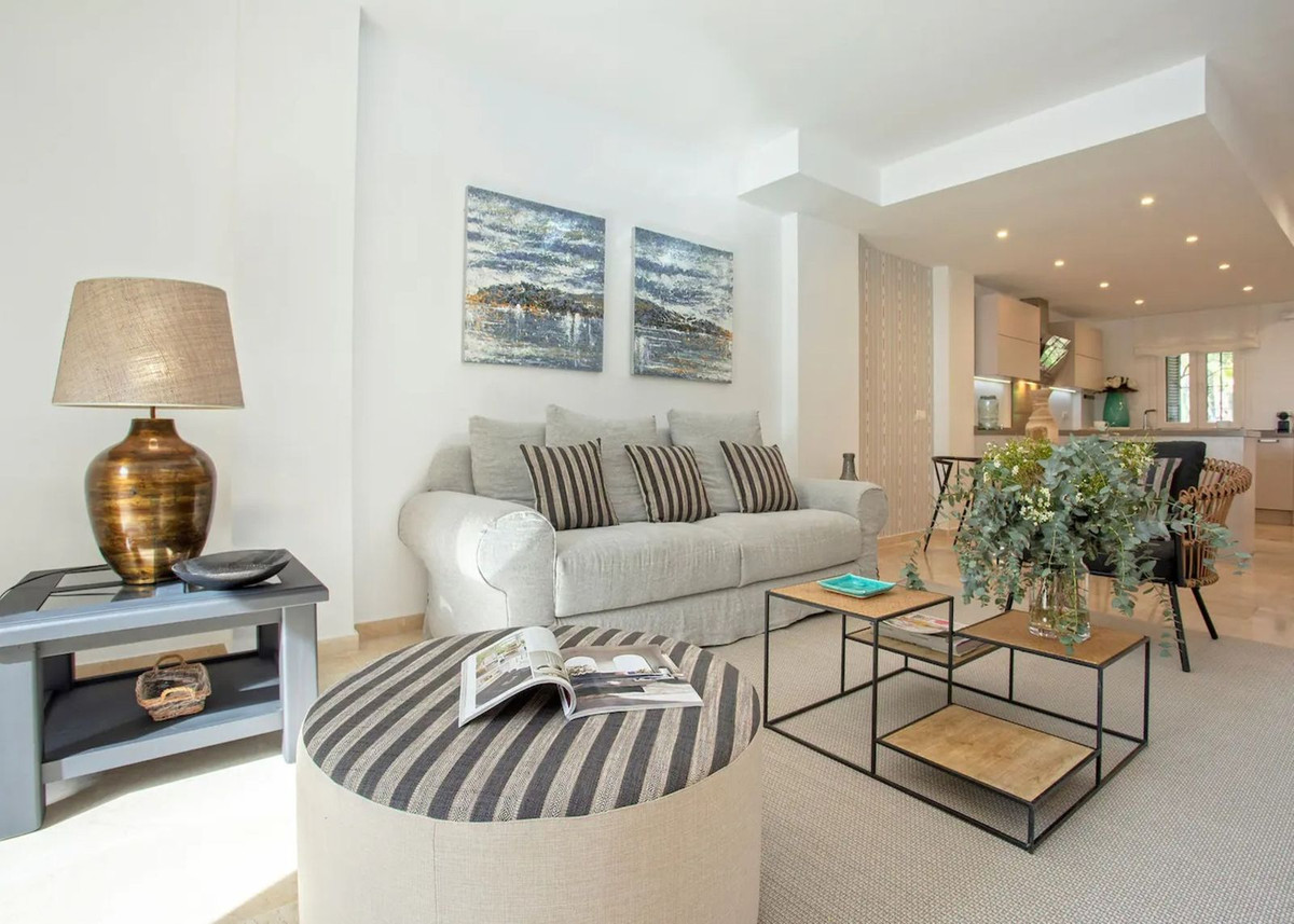 Just steps from the sea, this beautifully renovated townhouse is located in the highly sought-after Laguna Beach urbanization in Estepona.