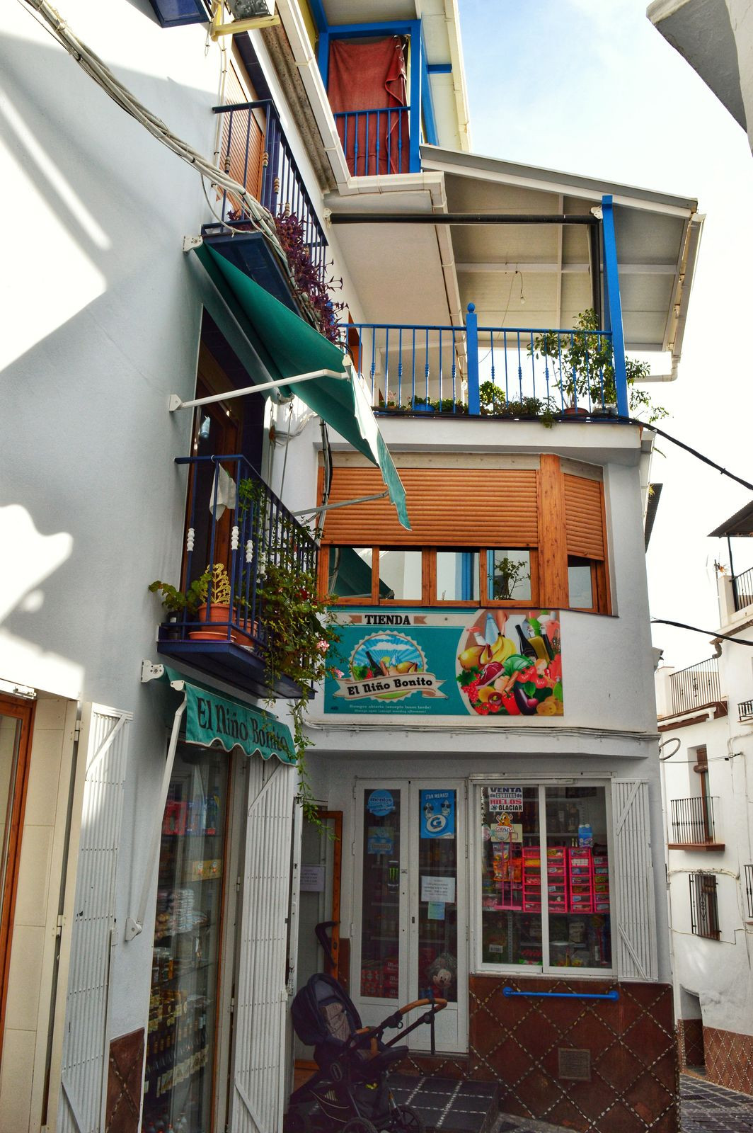 For sale a block of semi-detached houses near the Plaza de la Vendimia, due to retirement in the fabulous Cómpeta. The property offers amazing special opportunities as it has a well established grocery shop on the ground floor of approximately 300 m2. In addition to the shop there is a cold room, a kitchen and several storage rooms. There is also a former hairdressing salon and plenty of space for expansion, e.g. a restaurant with garden area or even a swimming pool.