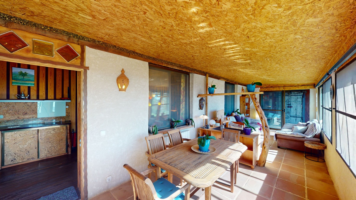 Between the Sierra de Almijara and the Mediterranean Sea lies this spectacular ecological finca of 4 hectares, bordering the natural park Maro-Cerro Gorde, which provides a haven of tranquillity and enormous privacy. The property has a plot of 35.955 square metres and offers a total of 270 square metres of construction. The property is completely surrounded by nature at its best, the property offers breathtaking views of the sea and the mountains, and all the buildings are completely hidden from each other thanks to its variety of trees, giving the feeling of living in a forest full of peace. The main house has a spacious living room at the entrance with a fabulous fireplace to heat the whole house, a fully equipped kitchen with a pantry, a dining room, a bedroom, a bathroom with a rain shower, a guest toilet, a reading and chill-out room, a sauna, a gym and an office that can be transformed into a large bedroom if needed. Leaving through the office we find a room built in a kind of igloo made of natural bricks. It also has a terrace perfect for relaxing and enjoying the surroundings. The secondary house offers a cosy space with a living-dining room and fireplace, a fully equipped kitchen, a bedroom, a bathroom and a private terrace which is hidden from the other property to provide a greater privilege of privacy. The guest residence has a bedroom, a kitchen and a bathroom. The finca has an equipped workshop of 25m2. It also offers a swimming pool area, a perfect area to take a peaceful break, thanks to the nature and the spaciousness of the pool it gives us the feeling of swimming in a lake in the middle of the forest. The property is made up of five buildings strategically distributed and set apart to guarantee maximum privacy and peacefulness for its residents. We also have a platform of approximately 300m2 with 360o views of the sea and the mountains. The estate has an extensive variety of fruit trees and flowers from all over the world, with 174 different varieties of trees. The property has water from a natural spring, a well and water from the irrigation community, it has 2 covered concrete water deposits of 125,000 litres and another water deposit of the spring water in the main house of 3,000 litres. The finca is reached by a 4 km asphalted road from the N-340 road. - It is 6 km from the beaches of the natural park. - 10 km from the centre of Nerja - 80 km from Malaga airport - 90km from the centre of Granada With all services and enjoying a real and varied sovereignty in what is considered to be the best climate in Europe, this place is truly a place to enjoy an excellent quality of life. We are pleased to be able to present this dream property to you soon, either personally or via virtual viewing. Because this world is unique - just like our Axarquía. In Andalusia. On the Costa del Sol. Here, on the sunny side of life...