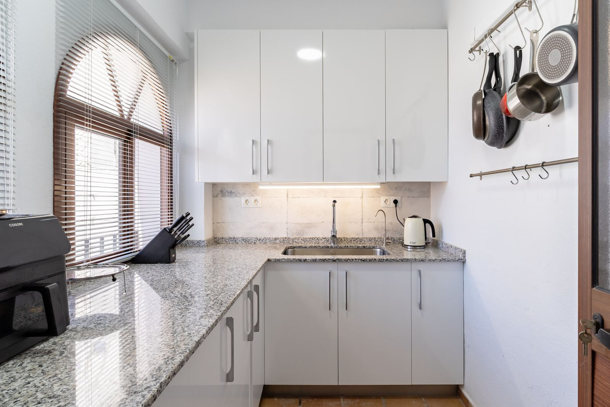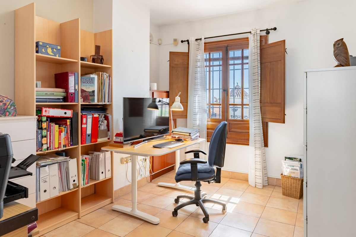 Inside, the main level features a spacious living and dining area filled with natural light, a fully fitted kitchen, and three bedrooms—two of which have en-suite bathrooms. From the living area, step into a stunning Andalusian-style courtyard, complete with a tranquil fountain—an idyllic spot to unwind.