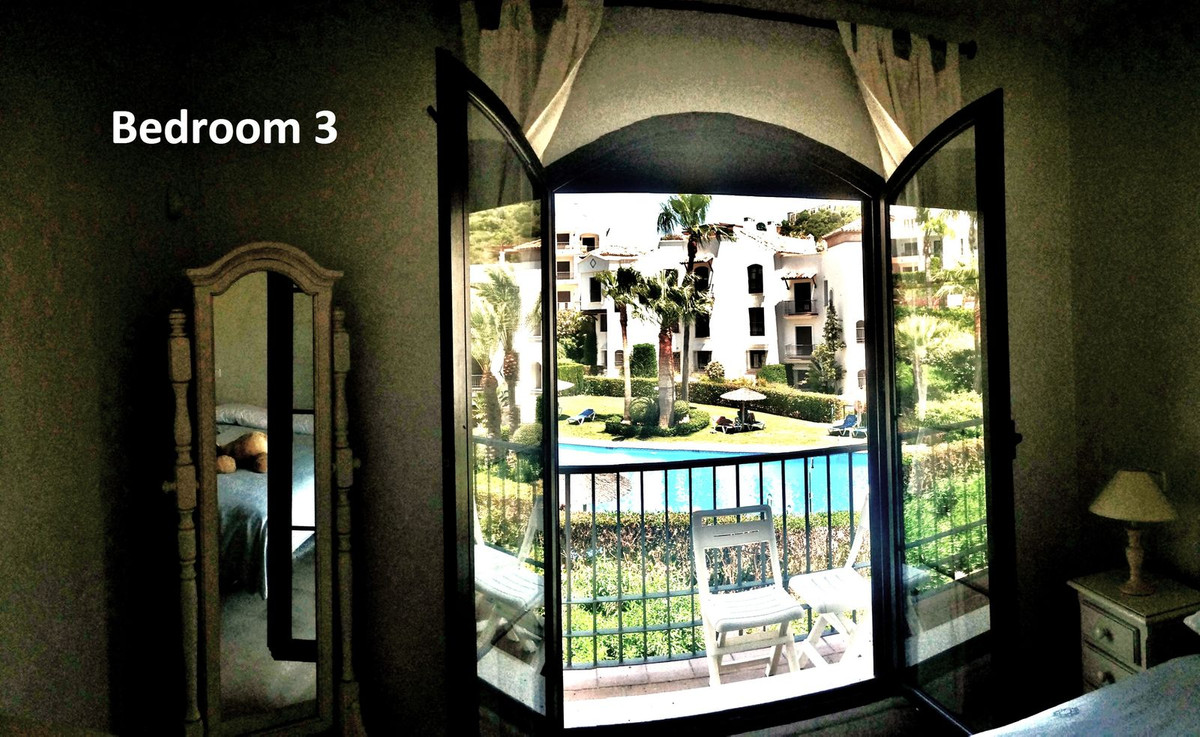 Main bedroom opens out onto the lower terrace looking over the golf course while the other 2 rooms open with balconies. open to the phase 2 swimming pool.