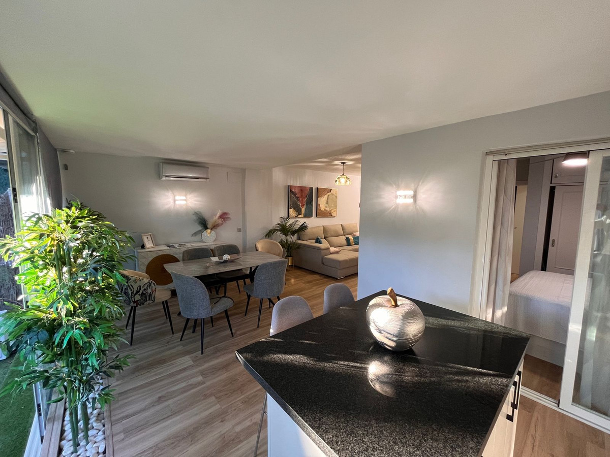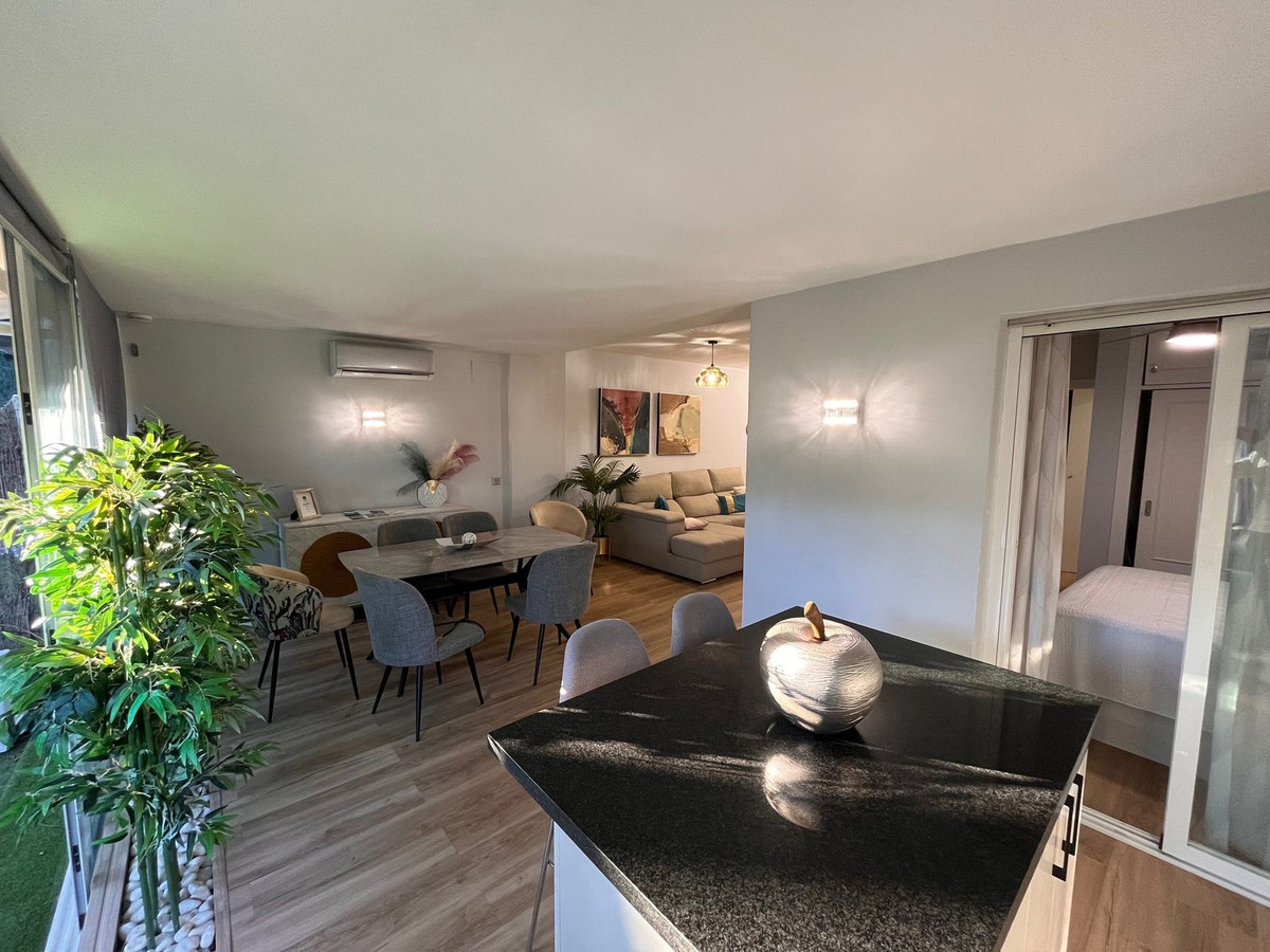 This beautiful fully renovated ground-floor apartment perfectly combines comfort, style, and an unbeatable location. One of its main features is the large private garden, ideal for creating different outdoor areas such as a lounge space, dining area, or a relaxation corner, making the most of the Costa del Sol’s exceptional weather all year round.
