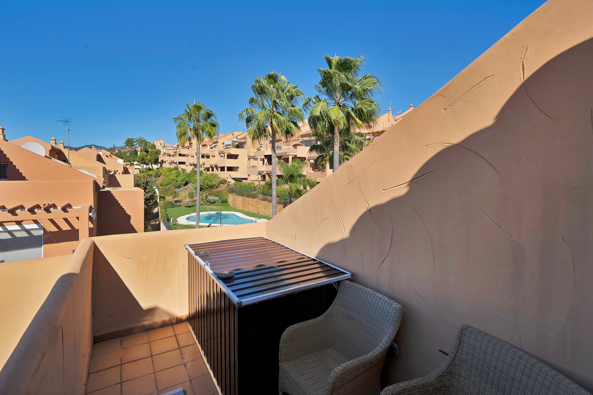 This spectacular duplex penthouse apartment of recent renovation and improvements, located on the second floor in corner, with south west orientation, has stunning panoramic views of the sea, the mountain, Gibraltar, the golf course and the whole environment. In addition, these views can never be blocked, due to their height.