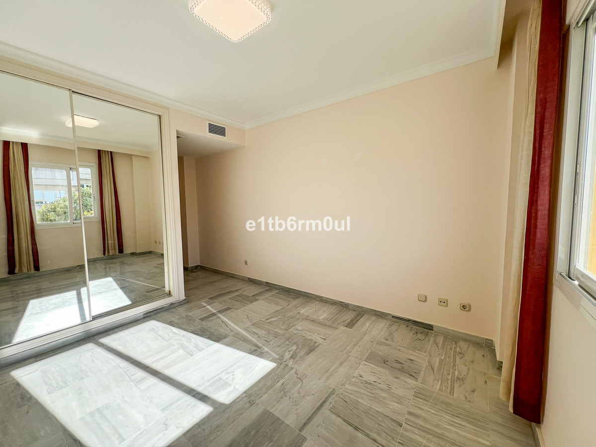 MARBELLA GOLDEN MILE • WEST FACING • WITHIN WALKING DISTANCE TO THE BEACH AND ALL AMENITIES • Superb well-situated West-facing two bedroom apartment on the desirable Marbella's Golden Mile, within walking distance to the beach and an array of amenities such as supermarkets, restaurants, shops and transports facilities. The fully gated complex offers well-maintained tropical gardens, large swimming pool, paddle court and lifeguard during the summertime. The bright apartment comprises: entrance hall with cloak room, living/dining room with access to the afternoon sun terrace, master bedroom en suite, guest bedroom, separate bathroom and a fully fitted kitchen with adjoined utility room. Features include: an underground car parking space, A/C H+C, marble floors throughout. Perfect as a holiday home, permanent residence or investment, in a quiet complex without road noise and yet, close to the buzz of Marbella's beaches along the Golden Mile.