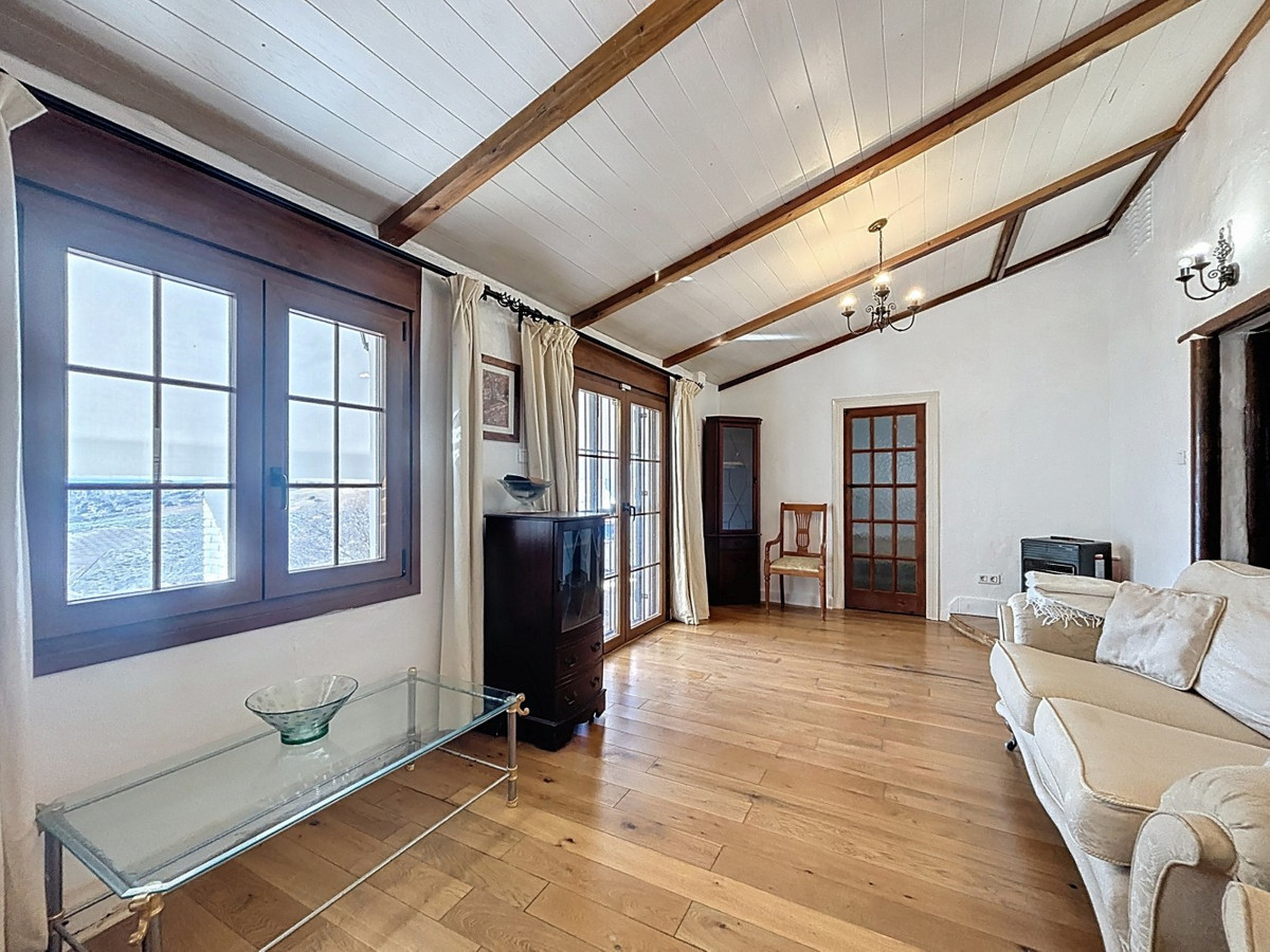 Cette charmante maison de campagne à Periana offre un cadre paisible, une intimité totale et de vastes espaces, parfaits pour profiter de la nature et de la vie rurale. Au rez-de-chaussée, vous trouverez un séjour/salle à manger confortable, une cuisine indépendante très fonctionnelle, trois chambres, deux salles de bain complètes et une buanderie pratique qui facilite le quotidien. À l'étage, une chambre très spacieuse, idéale comme suite parentale ou espace de repos privé, donne directement sur une terrasse offrant une vue panoramique imprenable sur les montagnes et le lac, un lieu idéal pour se détendre et admirer le paysage. À l'extérieur, la propriété dispose d'un grand jardin, de deux porches couverts, d'un espace barbecue et d'un grand terrain planté de plusieurs arbres fruitiers, parfait pour ceux qui recherchent espace, nature et la possibilité de cultiver leurs propres fruits et légumes. Une maison de charme, entourée de nature et située dans l'un des environnements les plus calmes et agréables de Periana. Nous sommes ravis de pouvoir vous présenter prochainement cette propriété, en personne ou par visite virtuelle. Car ce monde est unique, à l'image de notre Axarquía. En Andalousie. Sur la Costa del Sol. Ici, sous le soleil…